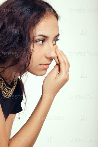 Девушка наносит макияж