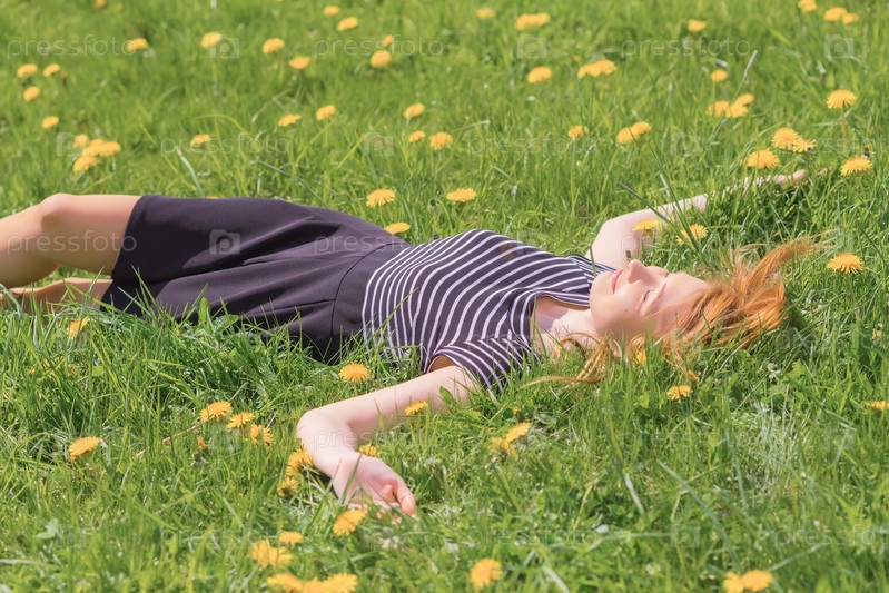 Девушка лежит в траве
