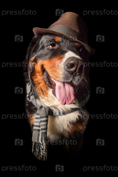 Собака в шарфе и шапке