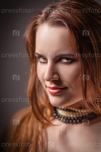 Чувственная девушка с пушистыми рыжими волосами