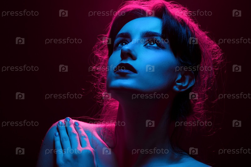 Женщина в разноцветных огнях