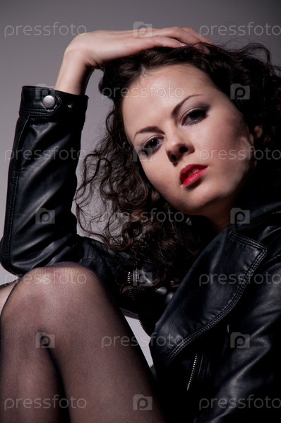 Девушка в чулках сидит