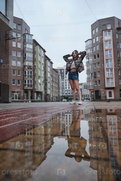 Девушка возле лужи