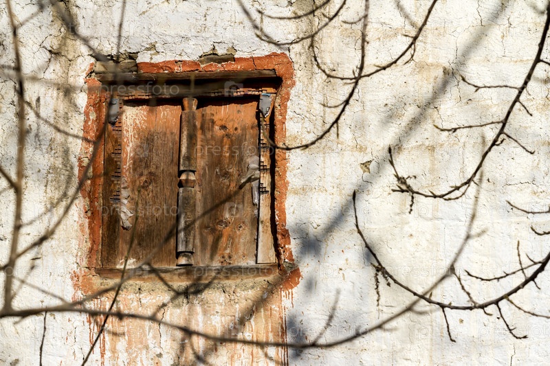 Старомодное традиционное закрытое деревянное окно в деревне Джонг в Непале, регион Нижний Мустанг