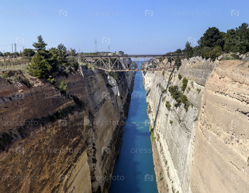 Вид на Коринфский канал (Пелопоннес, Греция) и мост