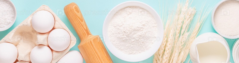 Ингредиенты для выпечки на голубом фоне