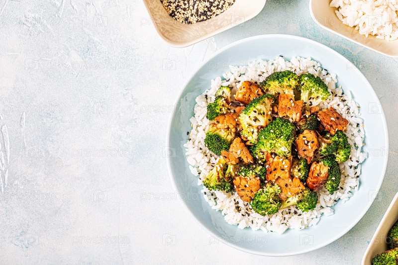 Жареный темпе с рисом и брокколи
