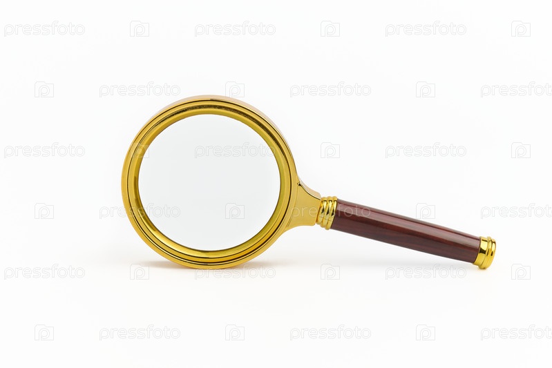 Увеличительное стекло или лупа крупным планом на белом фоне