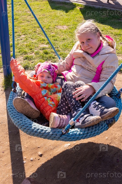 Дети играют на детской площадке в прекрасный осенний день. Дети играют на детской площадке в прекрасный осенний день