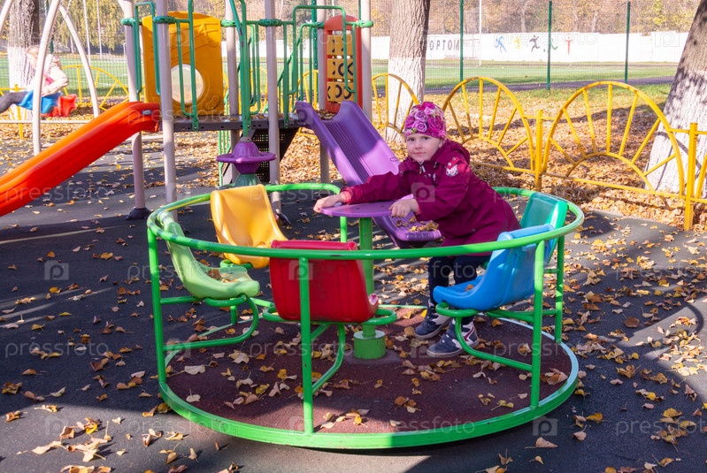 Дети играют на детской площадке в прекрасный осенний день. Дети играют на детской площадке в прекрасный осенний день