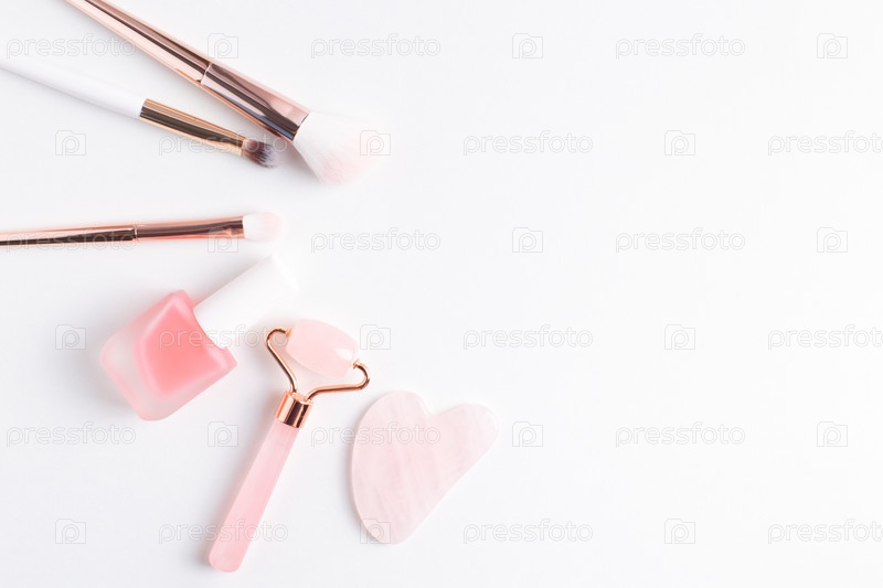 Товары для ухода за собой и красоты на белом фоне с копией пространства