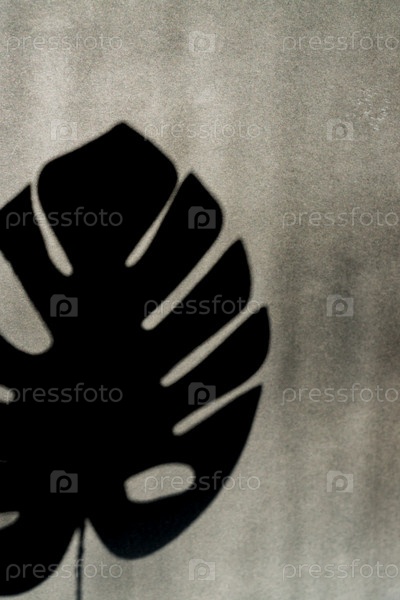 Тропическая тень листа монстера на пустой серой стене, черно-белая