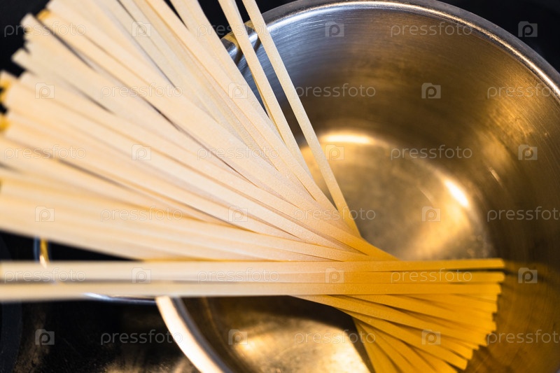 Вид сверху на порцию сырой пасты лингвини