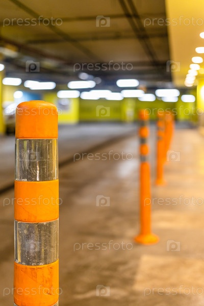Оранжевый охранный столб на подземной парковке