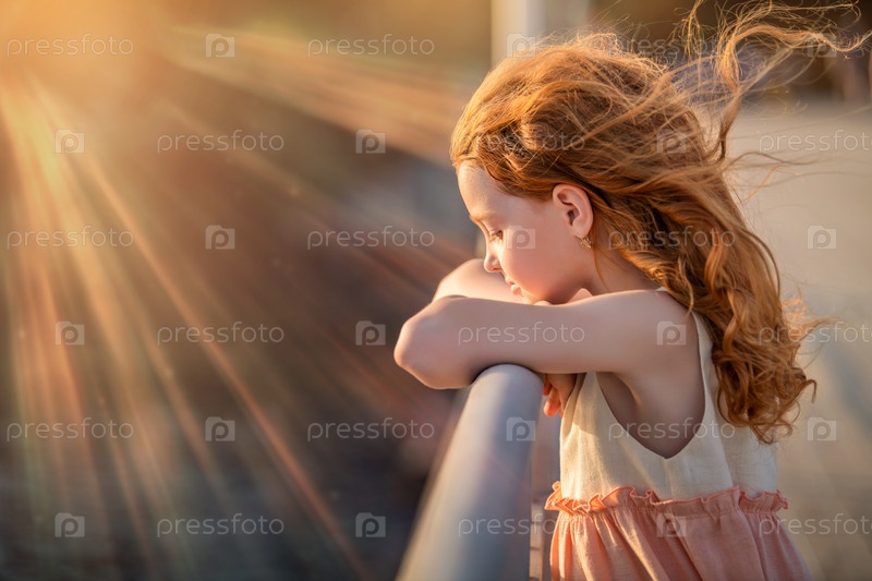 Портрет рыжеволосой девочки в лучах вечернего солнца
