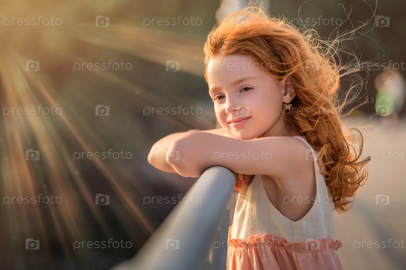 Портрет рыжеволосой девочки в лучах вечернего солнца