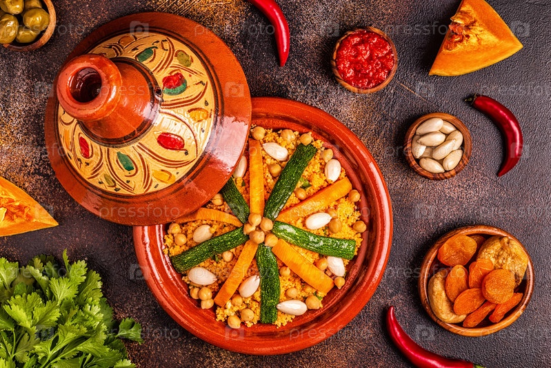 Овощной тажин с миндалем и кускусом из нута