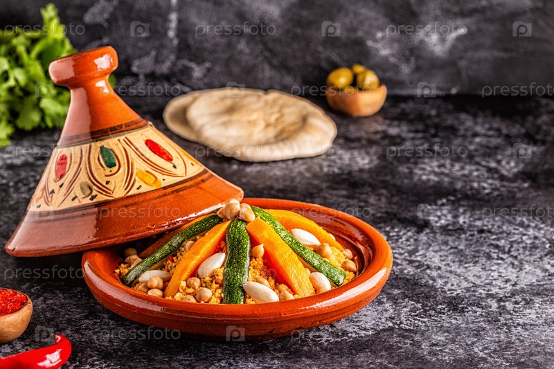 Овощной тажин с миндалем и кускусом из нута