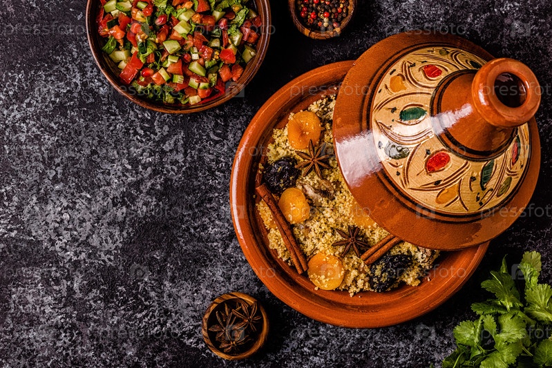 Традиционный марокканский тажин из курицы с сухофруктами и специями