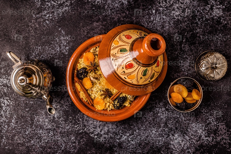 Традиционный марокканский тажин из курицы с сухофруктами и специями