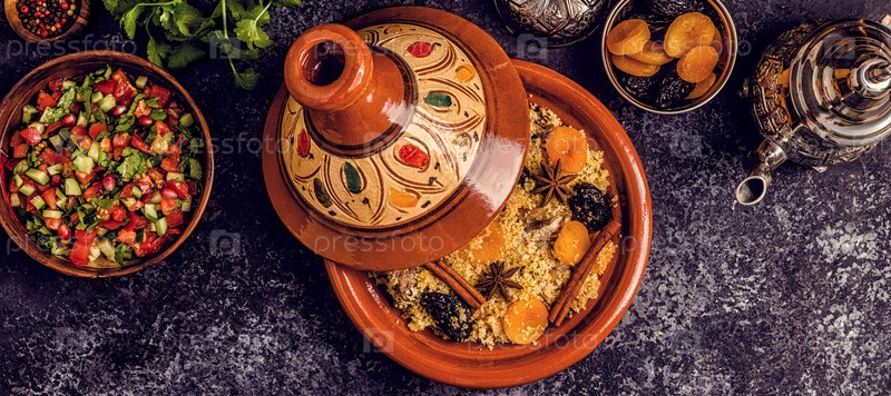 Традиционный марокканский тажин из курицы с сухофруктами и специями