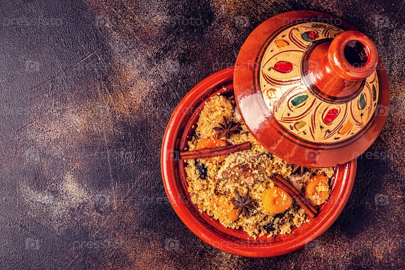 Традиционный марокканский тажин из курицы с сухофруктами и специями