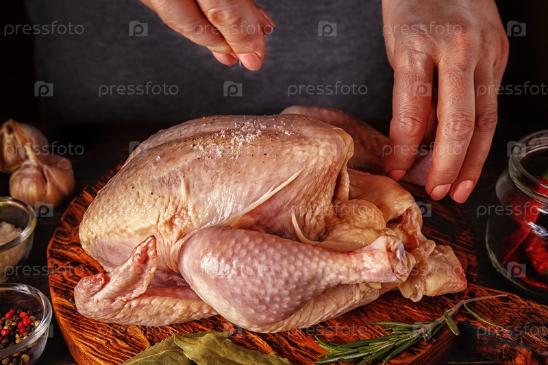 Сырая курица на деревянной разделочной доске