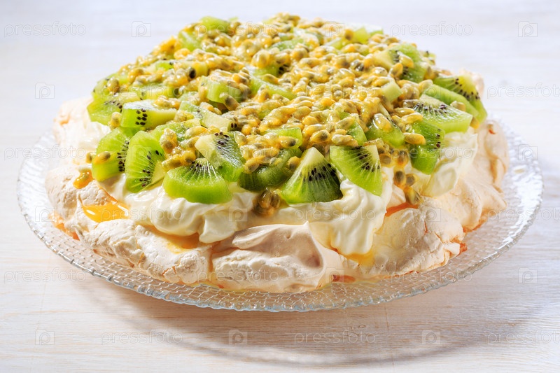 Безе Павлова со взбитыми сливками и свежими фруктами