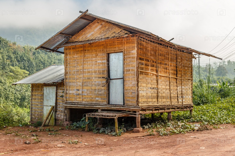 Традиционный местный бамбуковый дом в деревне, Лаос
