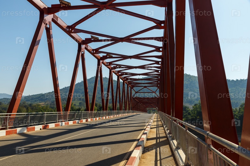 Мост лаосско-нидерландской дружбы насак-хохаодо. Железный мост через реку Меконг. Лаос