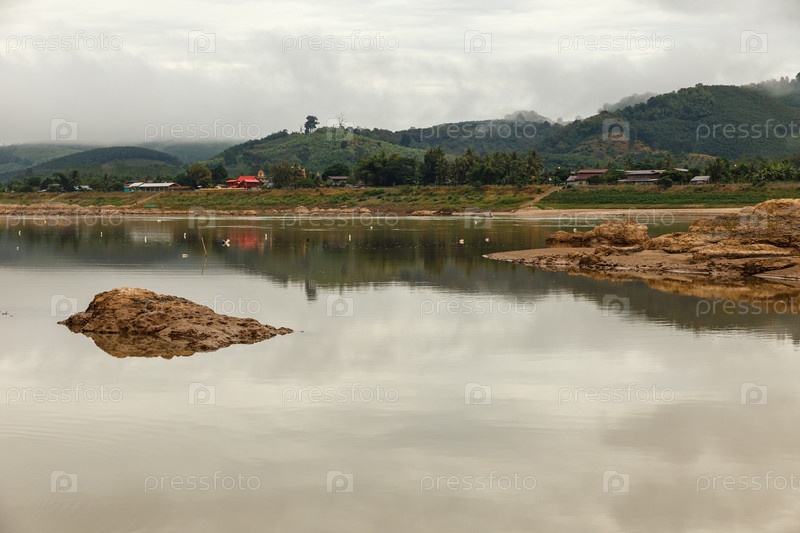 Река Меконг. Граница между Лаосом и Таиландом. Вид на реку из Лаоса. Провинция Вьентьян