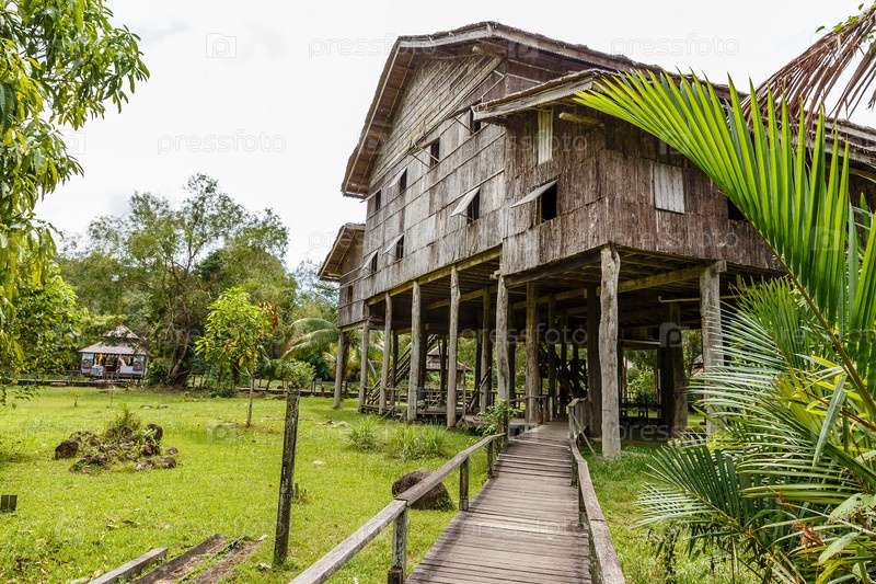 Традиционные деревянные дома. Меланау Талл в деревне культуры Кучинга и Саравака. Борнео, Малайзия
