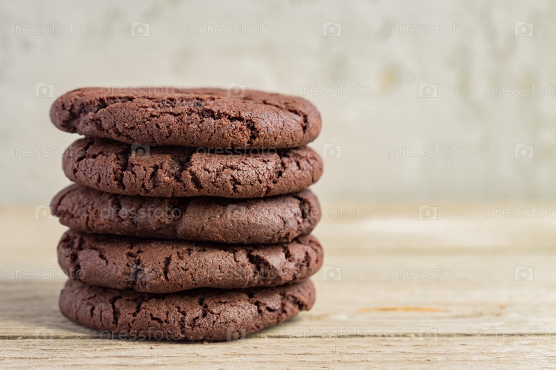 Застрял шоколадного печенья пирожных на деревянных фоне. Домашняя выпечка