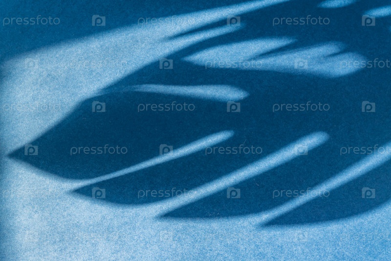 Тропическая тень листа монстера на фоне пустой синей поверхности