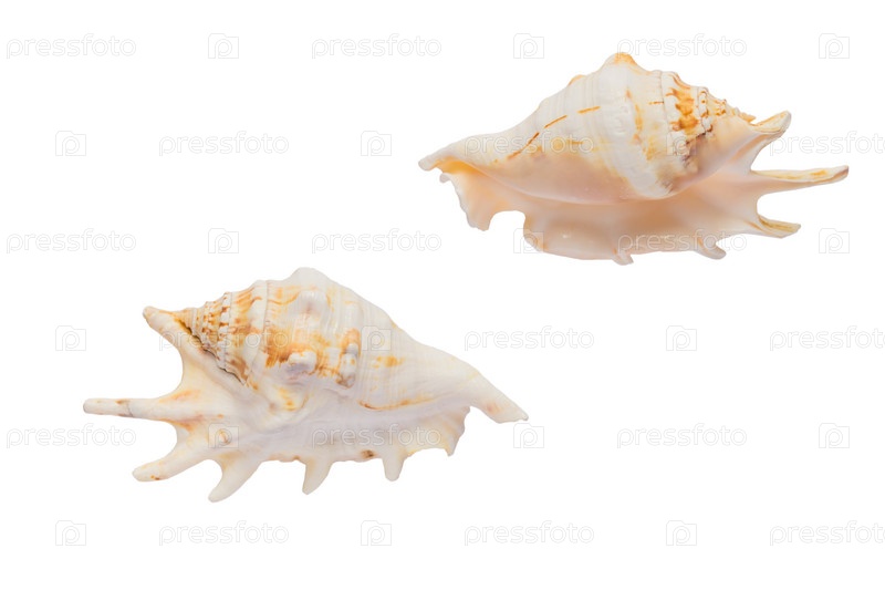Две стороны морской раковины ламбиса изолированы на белом фоне с обтравочной дорожкой