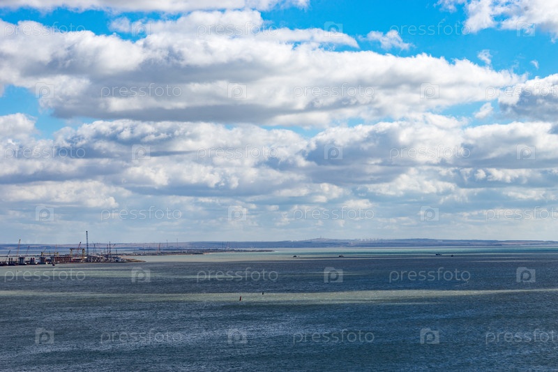 Морской пейзаж с Керченским проливом во время строительства Крымского моста
