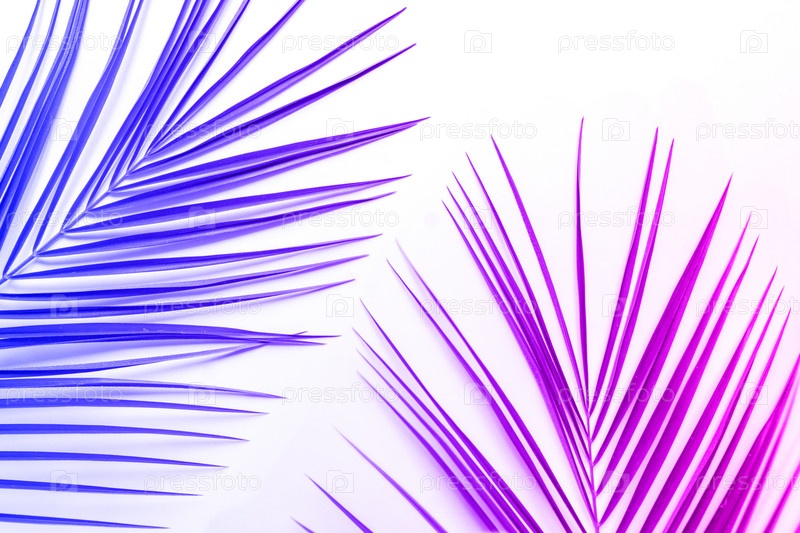 Тропические зеленые пальмовые листья на белом фоне. Плоская планировка, вид сверху
