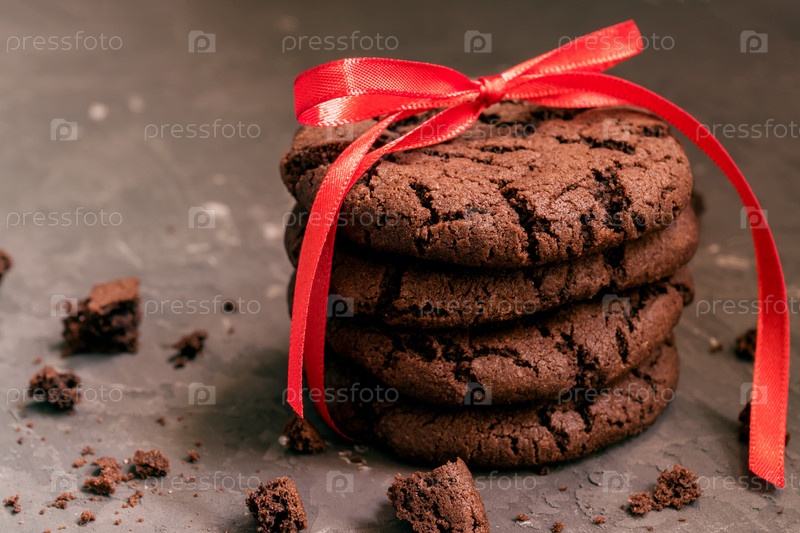 Домашнее шоколадное печенье с трещинами на черном фоне