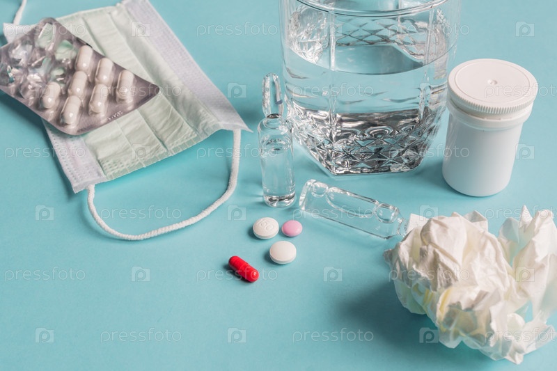 Здравоохранение и медицинская концепция. Лечение вирусной пандемии. Лекарства и защитные маски. Коронавирус 2019, нКоВ