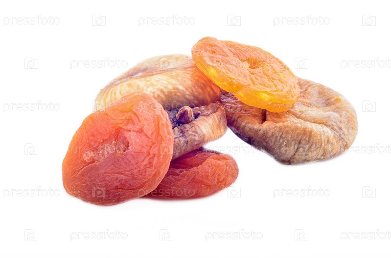 Курага и инжир на белом фоне