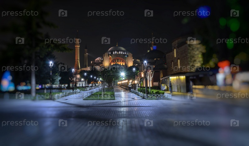 Вид на мечеть Святой Софии вечером в Стамбуле, Турция