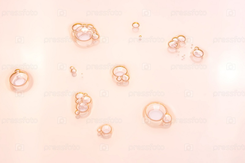 Текстура глицеринового геля. Капля прозрачного сывороточного тонера на розовом фоне. Жидкий увлажняющий гель с пузырьками макро
