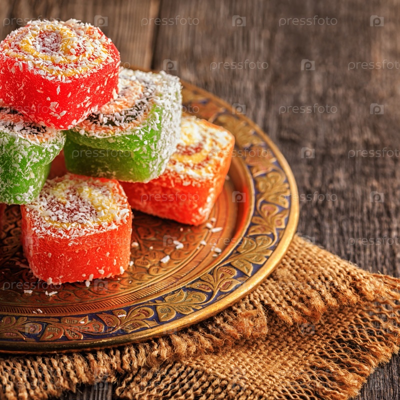 Рахат-лукум на темном деревянном фоне