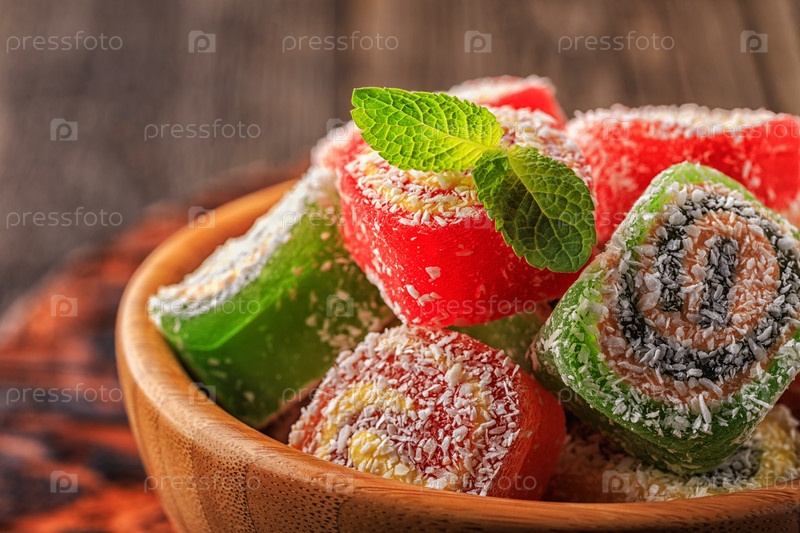 Рахат-лукум на темном деревянном фоне