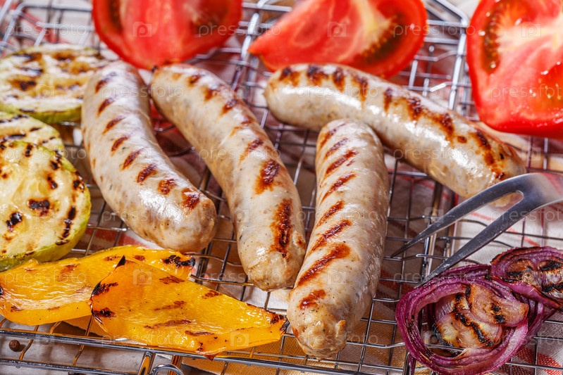 Вареные колбаски на решетке гриля