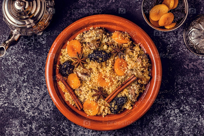 Традиционный марокканский тажин из курицы с сухофруктами и специями
