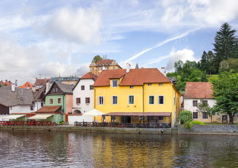 Красивые здания на набережной реки Влтавы. Чески-Крумлов, Чехия