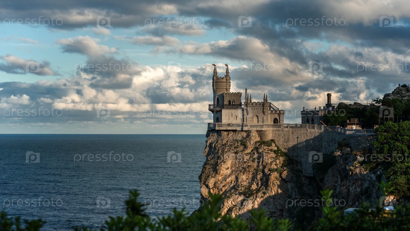 Замок Ласточкино гнездо на скале над Черным морем крупным планом, Крым, Ялта. Одна из самых популярных туристических достопримечательностей Крыма