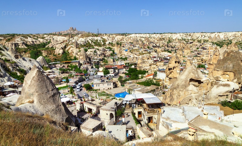 Ночной вид на город Гереме с холма в Каппадокии, Турция