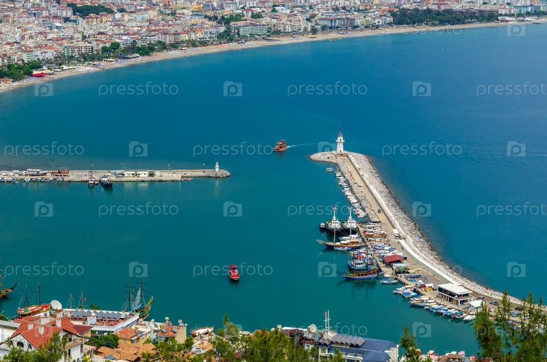 Вид на город Аланья из замка Алании в Турции
